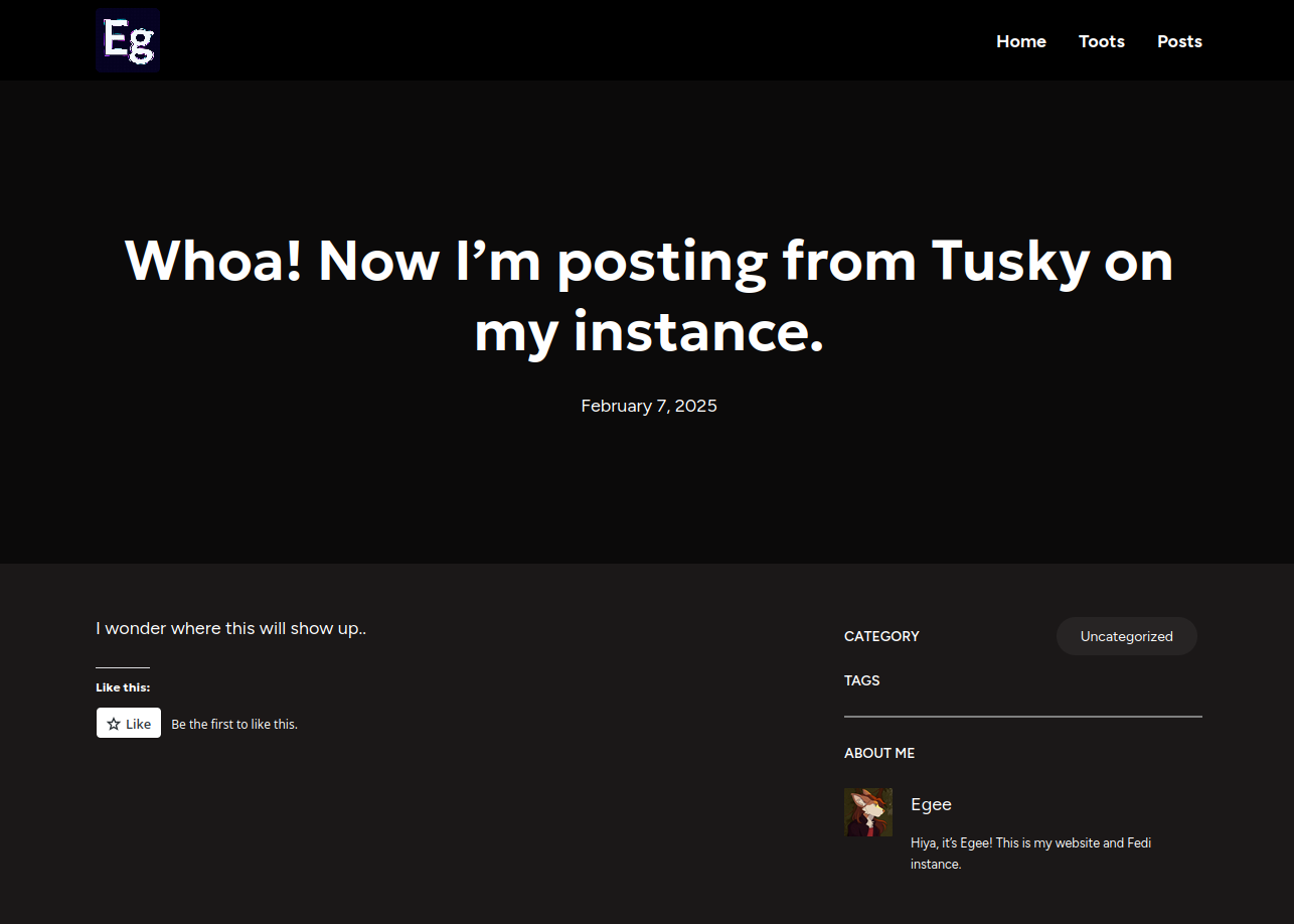 07 Feb 2025 Uncategorized Posts look silly on the website I have some polishing yet to do on the website because fedi posts look a bit silly on the website.I mean.. maybe not, though? It might grow on me haha